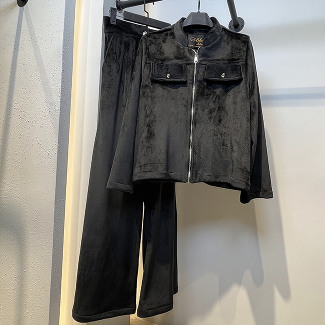 Review of women's bomber jacket and pants set, model Santa Code 868, black